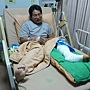 5/6當天因小腿腫脹無法手術,神情略帶沮喪